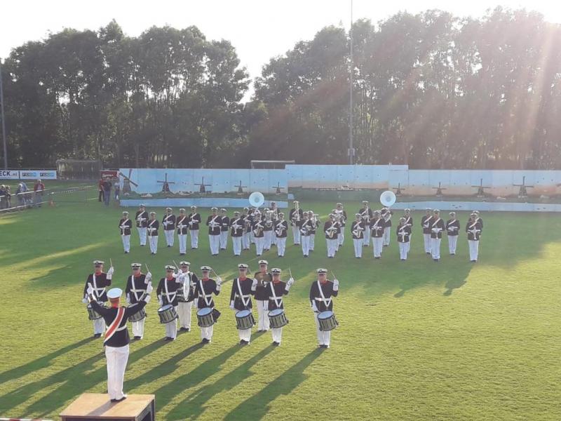 Daarna was het snel omkleden en spullen pakken om naar Krimpen aan de Lek te vertrekken waar ook een taptoe stond te wachten. Op uitnodiging van Crescendo Krimpen mochten we samen met Dice Musica, Oranje Garde en ATK voor een wervelende show zorgen.